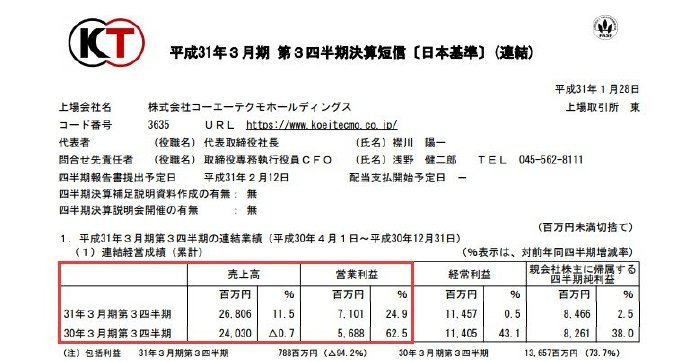 光荣特库摩近日公开18-19财年第三季财报,截至该季度末(2018年12月31日)营业额为268.06亿日元,同比增长11.5%,营业利润71.01亿日元,同比增长24.9%。