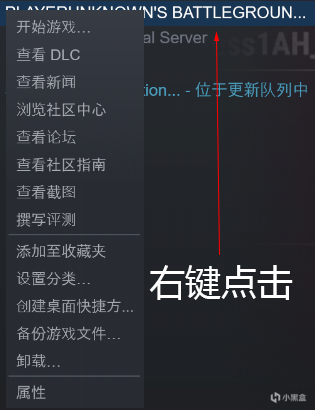在Steam-库-PLAYERUNKNOWN’S BATTLEGROUNDS(右键点击)