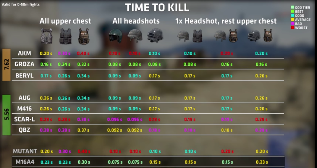 AKM虽然伤害高达49点,但他的击杀并不比M4来得有效率;AKM的优势在于面对不同防具,只要有一枪能击中头部,那么击杀的效率就会得到巨幅的提高。但是你如果不去打头,那么AKM就没有M4更强劲。