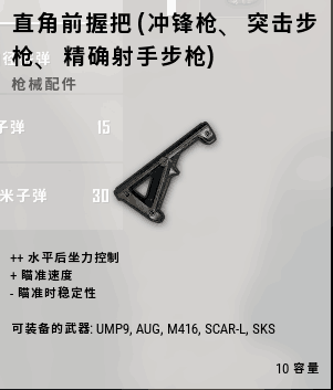 直角前握把的优势在于扫射车辆,射击25米内移动中敌人,或者移动射击的使用者。