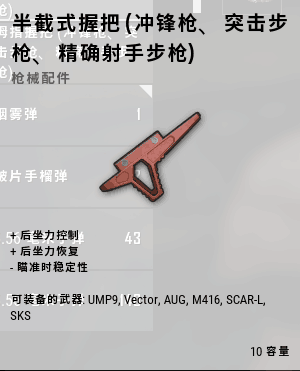 半截握把在中距离射击(25米-100米)的能力强于上述两种握把。在近战的表现上也很不错,就算你前10发打不死人,你还有30发呢!就看敌人给不给你机会了。