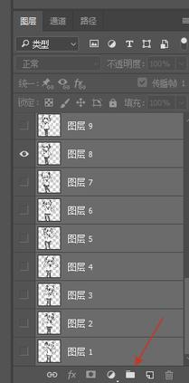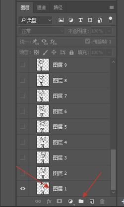 完成所有图层的抠图后,左键图层1,然后按住Shift键再点击最后一个图层。再点击文件夹图标创建新组