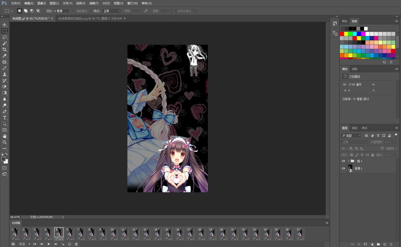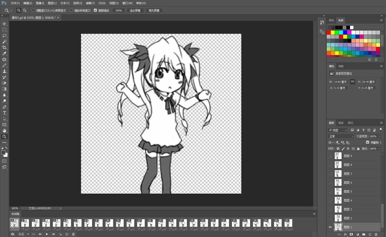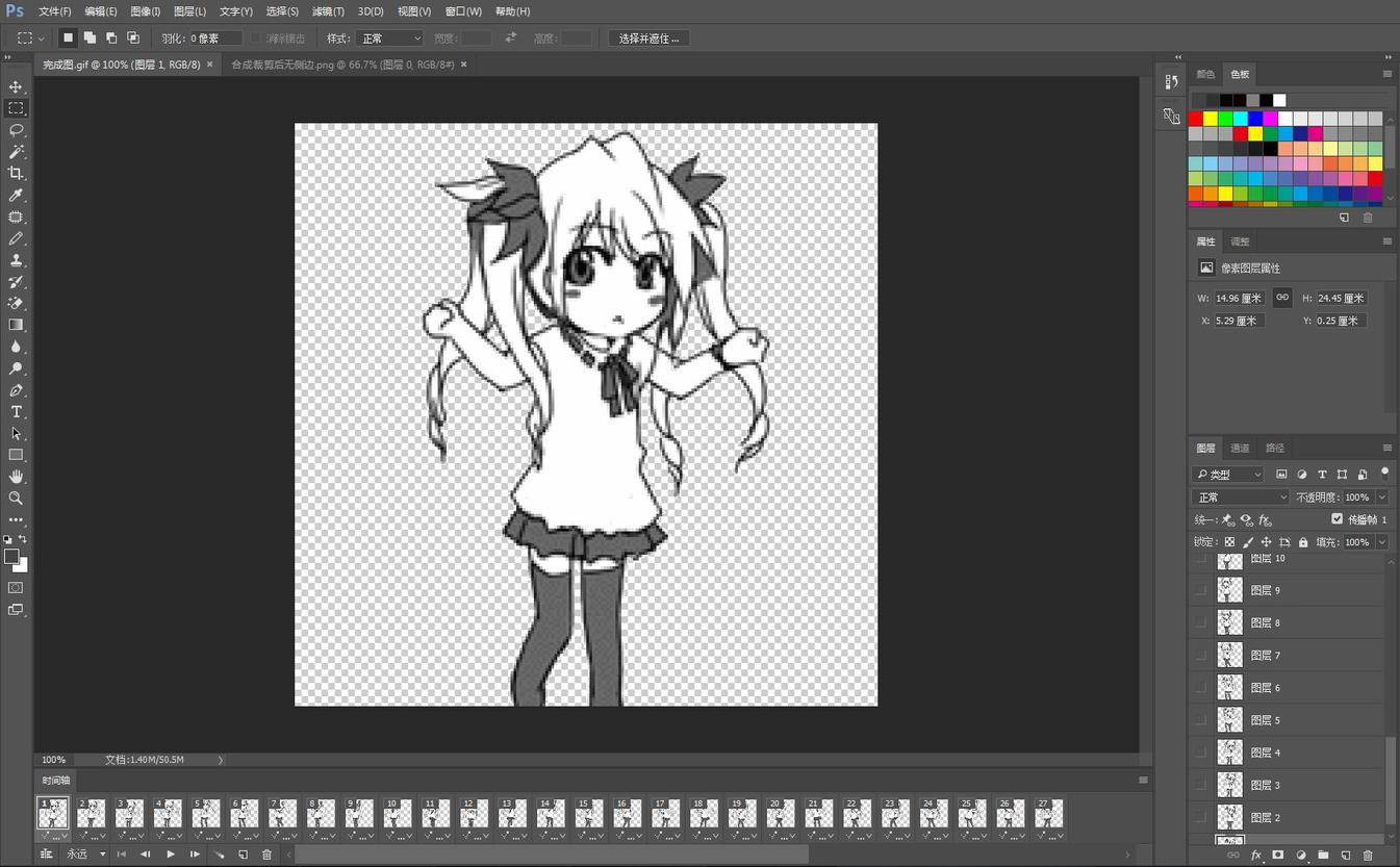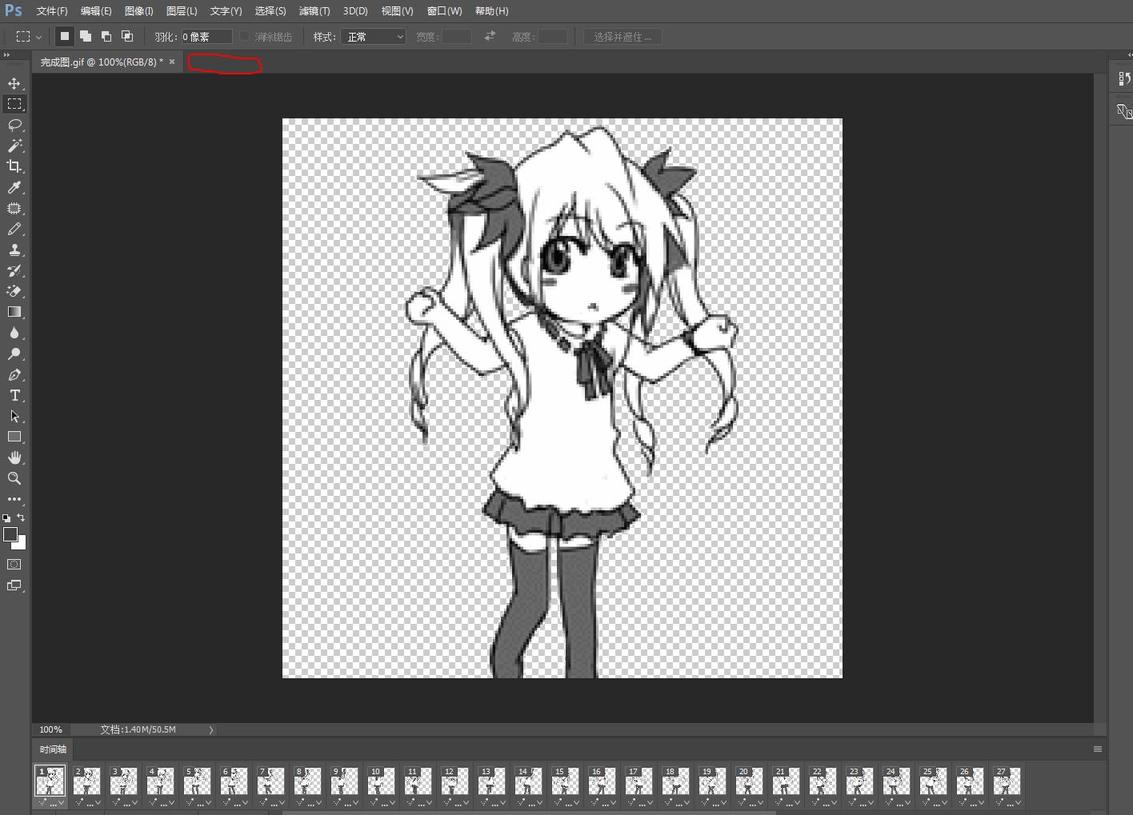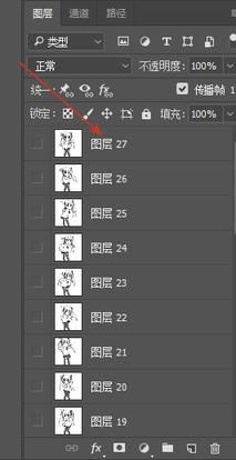 因为GIF图是由很多个图层组合的,所以我们只完成了第一张的抠图(不同的GIF图图层数不一样,我这张是27个图层)