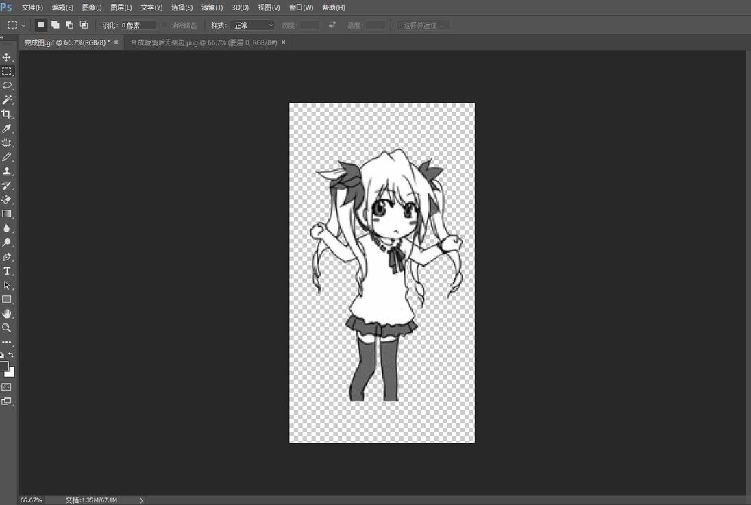 将切好的背景图和抠好的素材准备好。把抠好的GIF图拖入PS