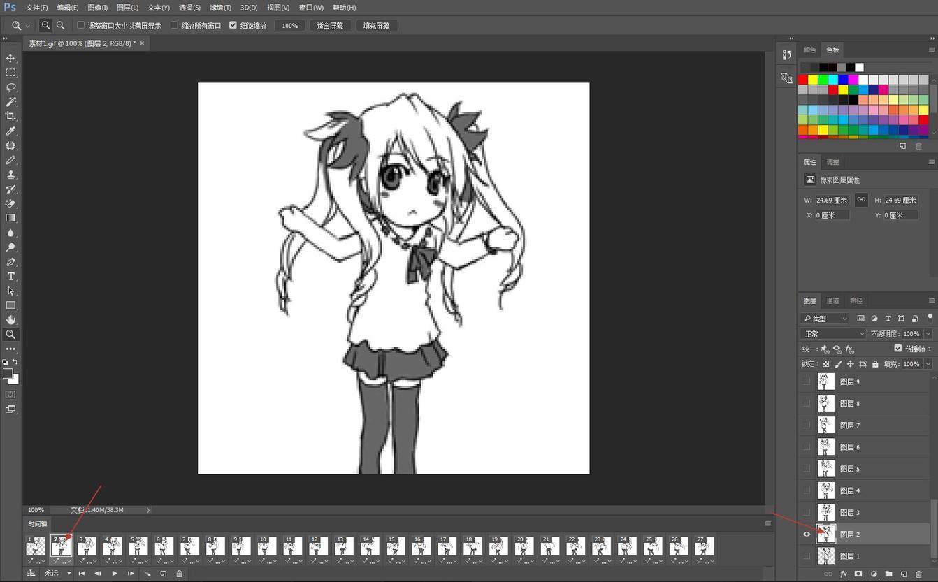 在时间轴选择第二帧,图层处选择图层2,然后继续上面的步骤