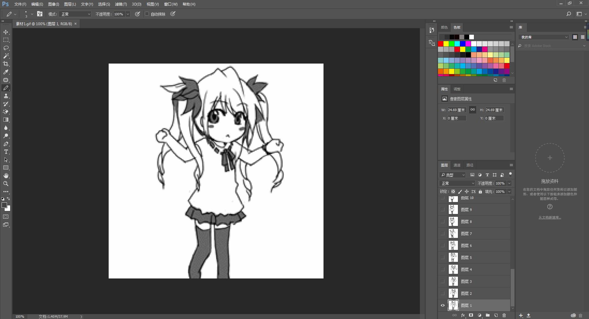 首先先将GIF图拖入Photoshop中