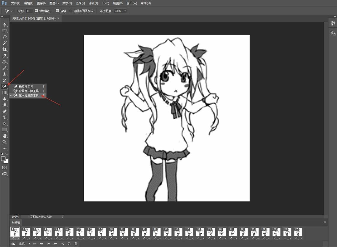 左端工具栏,右键橡皮擦,选择魔术皮擦工具