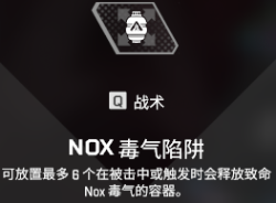 Q技能:NOX毒气陷阱 CD:30秒 ,可同时储存3个毒气陷阱。