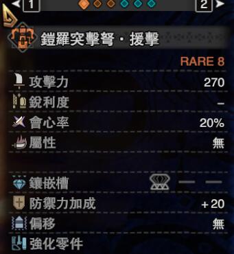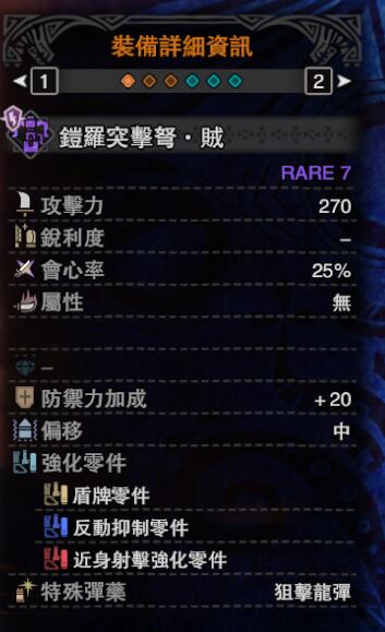 首先,要明确你客制的这把重弩是打的什么弹种以及你想不想装盾牌,我们以打散弹的铠罗突击弩·贼为例: