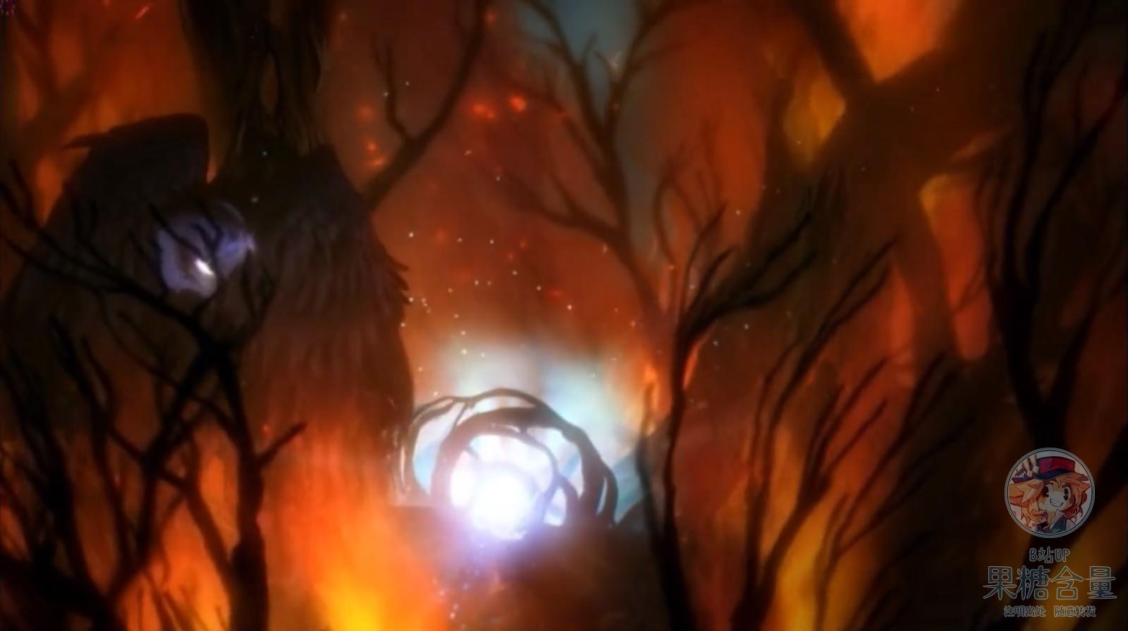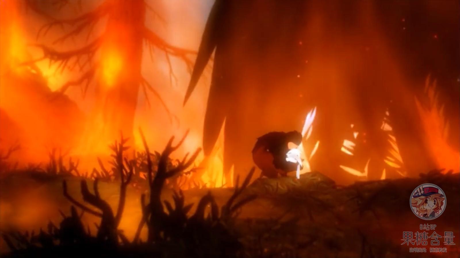 而在故事的最后,在黑鸟即将阻止ori之际,Naru的行为感动了它,让它想起自己已经失去的孩子,它回头看着燃烧的森林,想起了自己最后的一个孩子仍在燃烧的森林之中,一刹那间,她从复仇的愤怒中醒来。