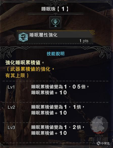 睡眠武器同理其他异常属性附加武器:10%的面板附加到魔物身上。其中比较具有代表性的武器:骨鎚龙衍生,中分哥衍生,极个别铠罗武器自带。