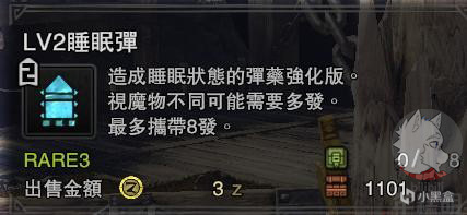 通常情况下,多人模式需要2把轻弩携带所有睡眠弹并且携带眠草+增强剂合成近13发LV2+17发LV1=1720点睡眠值,而且如果不携带增强剂=22发LV1+8发LV2=1540点睡眠值,累计两把轻弩不触发弹丸节约纯净施加3080点睡眠值,还要硬性触发2次弹丸节约,所以需要2眠的小伙伴请自行带好,除非全员轻弩否则2眠的话需要携带备胎,这点请注意。(目前单刷还没测试过,所以暂不放出,日后会补上)