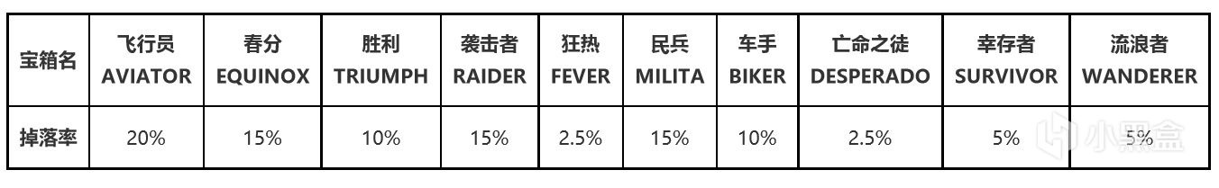 现在玩家们可通过每周随机宝箱获取飞行员箱子。箱子的掉落率有了更改