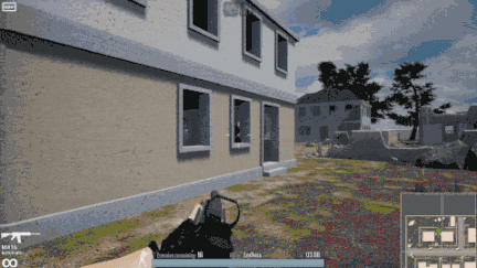 先说说基本的对枪,TPP和FPP的对枪方式完全不一样,TPP一般是后露头的会赢,但是FPP则是先露头的赢,视角造成的现象,TPP的打法就是一定要稳健,对枪的时候两边都有掩体实力也相当的情况下,谁先沉不住气谁就先死,这是很明显的。(虽然这样说但是FPP里只要你的实力够强,反应够快,枪法够准,延迟够低,照样对死先架枪的敌人!TPP后架枪输的很少很少几乎没有,我玩这么久吃鸡只遇到过两次哦!)看下图。