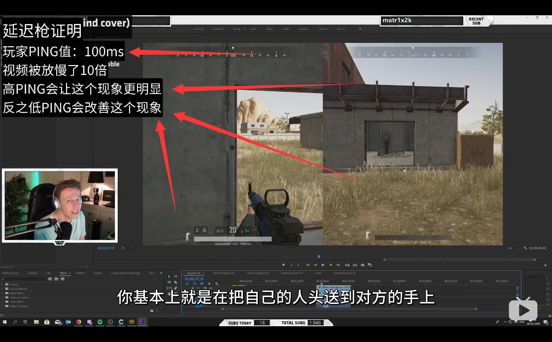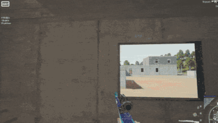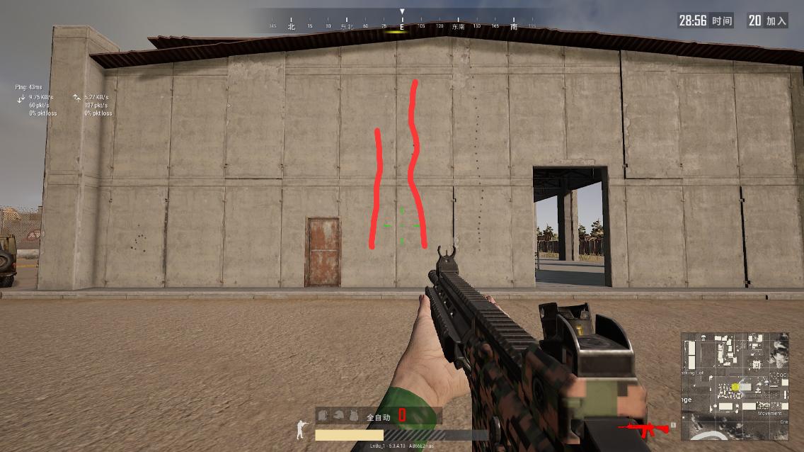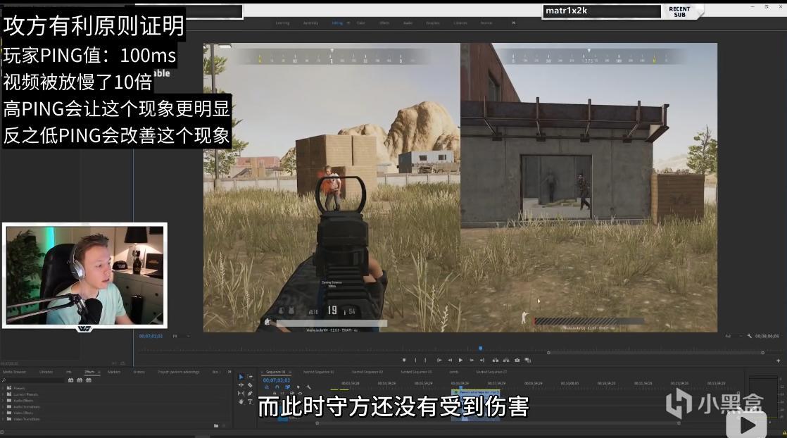 而在之后的论证视屏中,环境是这样的,延迟为100,攻方并没有发现守方,直接拉出掩体发现守方后才开镜,射击。守方也不知道有攻方的存在,没有枪械,也没有开镜瞄准。