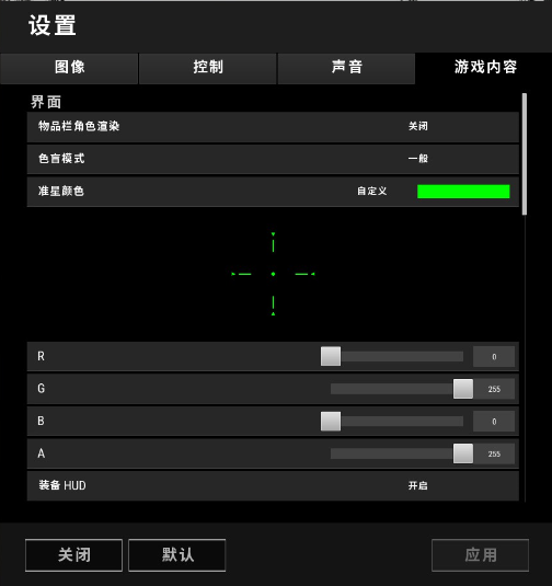 准星建议红色或绿色,自己用的瞄准镜常设置成什么颜色就设置成什么颜色,当然你有喜欢的颜色也可以去调。