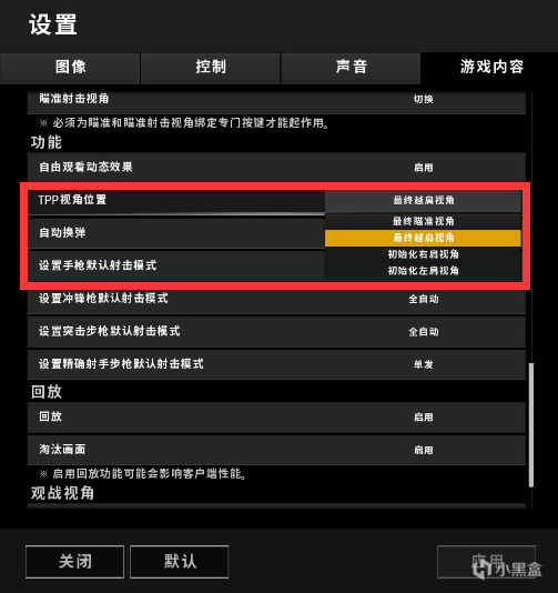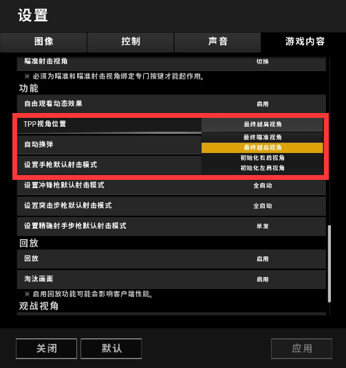 TPP视角位置其实是调肩射的。最终瞄准视角就是上次的肩射方向是那边,下次就是哪边。初始化右和左肩的其实就是锁定方向了。如果想要原来的肩射感觉就选最终越肩视角。