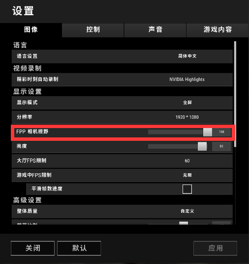 FOV也会影响游戏的灵敏度,很多人会觉得TPP灵敏度快,FPP会变慢,这里也是FOV的原因,可以把它加到95-97就会和FPP的灵敏度差不多了。