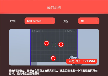 - 经典模式会分十个等级,每个等级有五滴血,多个目标会由小到大,再由大到小变化,如果漏掉目标的话会扣除一滴血,如果在扣除五滴血之前没有到下一个等级就会GAME OVER。每天两组,职业选手基本45W+