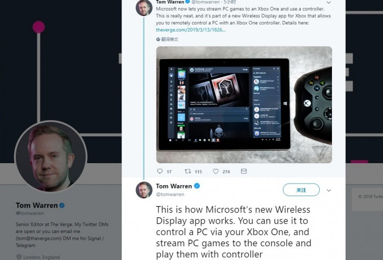 经过长达几个月的测试之后,微软的应用程序“Wireless Display”现在已正式面向所有Xbox One用户发布。它最初是Surface Hub上的一款应用,目的是使用户可以更简洁地连接并控制PC,现在加入了Xbox手柄支持,但并不支持键鼠。