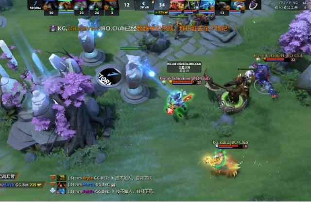 23分钟,KG打掉了肉山,拿到肉山盾。马上转下路找带线巨魔的麻烦,巨魔被四人围住,帕克大招缠住,誓死想拼掉帕克,只是帕克有相位转移,巨魔只能独奔黄泉。