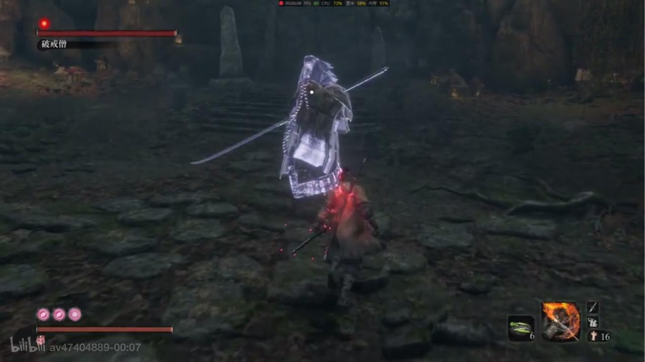 【排名第8——幻影破戒僧】破戒僧真名八百比丘尼,附虫者,以不死之身永恒地守卫在仙乡门口,其幻影看守着水生村石洞,也就是守卫神石和神轿。因为是初见破戒僧,而且有些出手比较诡异所以还是比较困难的,要注意舞娘大风车和举手鬼跳上挑刀法,有时近身会触发后跳神经刀,多打几次就过了。逃课打法:炮仗和鸣种,幻象吃鸣种,炮仗可以炸硬直