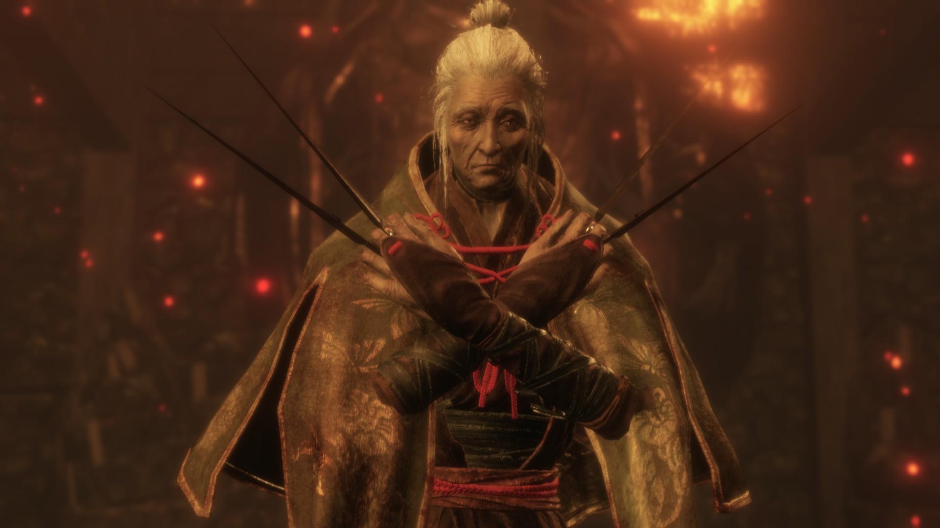 【排名4——苇名剑圣一心(老年)】一心的一生是段传奇,老头子性格豪爽好战,爱恨分明,也就是赠与狼秘籍的天狗,年轻时锐意进取且贪婪追求更高更强的境界,被称为剑鬼一心,一直重复死斗磨炼剑技,之后一心为苇名众磨炼整合自己的技能开创了苇名流,带领苇名众盗国,独自击杀敌军首领,成名后被称作剑圣,他热衷于不断吸收各种流派技能故而苇名流唯一达到极致的只有苇名十字斩。屑一郎的爷爷,爱护孙子却无力阻止孙子,直到临终都在寻求死斗,并且得以如愿。走修罗结局的最终boss,柔剑永真死后与狼开战,一阶段会用一字斩二连等苇名流剑技,做好弹反打过不难尤其是打了巅峰剑圣就更轻松了,注意抢先手一定注意他的闪避攻击,可以招架的,二阶段会出现一系列火系变招,结合火焰的十字斩,踩地板出火焰的一字斩,全图喷火接龙闪等等,这些技能有很长的收招时间是优良的输出时间,多死几次熟悉技能就能过。逃课打法:二阶段火伞难度大幅降低。