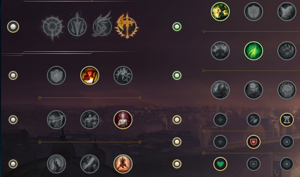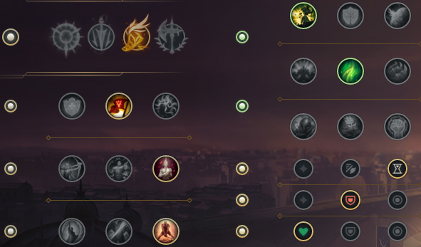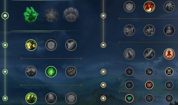 ☞第一套这一套的关键在于迅捷步伐,这个天赋一是可以弥补前期弱势的对线能力,配合一技能的回复加上腐败药水基本可以安全过渡到六级。而对于血统可以和韧性互换,主要还是看控制技能的多少,血统是进一步强化续航和单挑能力,韧性则可以在单带的时候增加生存能力。同时复苏之风和过度生长可以凭自己喜好选择,个人感觉没有太大的区别。而骸骨镀层则是打强爆发的如鳄鱼之类的英雄很好用。