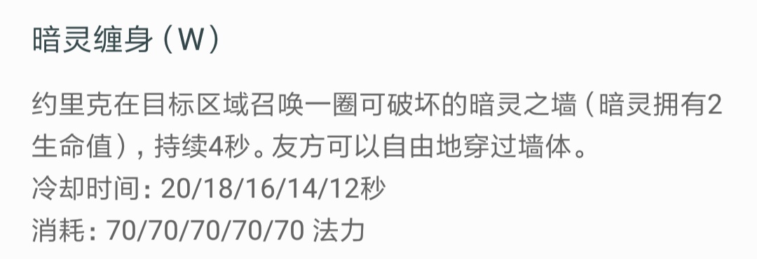 ☞二技能对于这个技能没有太多可以说的内容,可以理解为没有伤害但其余方面加强的皇子大招。需要注意的一点就是该技能在一级时拥有两点生命值,三级时拥有三点生命值,五级时才拥有四点生命值。而且这四下都是实实在在的四下,不吃技能不吃伤害,和真眼一样厉害。后期你这四下可以吃四下普攻伤害,而且更多的人会因为被框住而心慌交很多的强化普攻技能来破墙而出。所以这个技能团战放的好可以在限制对方走位的同时吸收很多的伤害。还有一点就是这个技能释放的好可以在单带的时候替兵线抗塔,也算是一个小技巧。