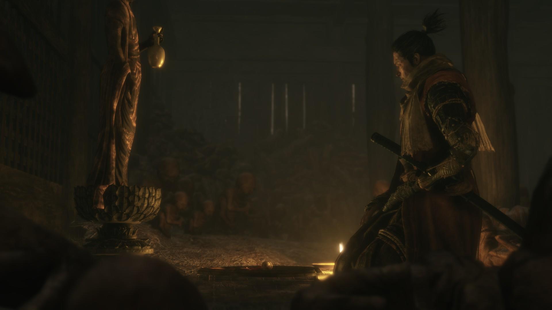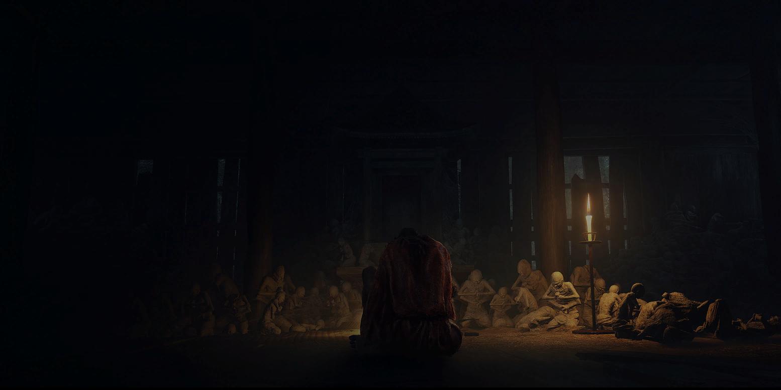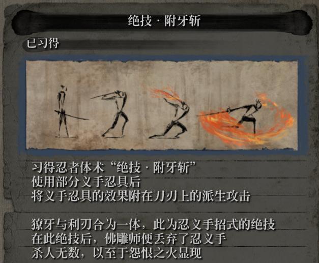 或许是照应了一心老爷子那句“忍者大多都是这样,默默无名地死去”,佛雕师至死我们都不知道他的来历、真名,只有收集游戏中支离破碎的线索才能还原他的经历。他的称号有很多:只猩、忍者飞猿、飞天猿猴等,说到只猩,大家是否突然意识到为什么一心老爷子初次见狼会说“饥饿的狼,令人怀念的忍义手,就称呼你为只狼了”呢?没错,佛雕师因杀人快堕入修罗时,一心出面用绝技十字斩切断了他左臂(并吹了几十年),只猩就是那个时候他起的名字,而且不死半兵卫称呼佛雕师为只猩,这在下面会继续展开,现在就收集到的线索开始介绍佛雕师经历。