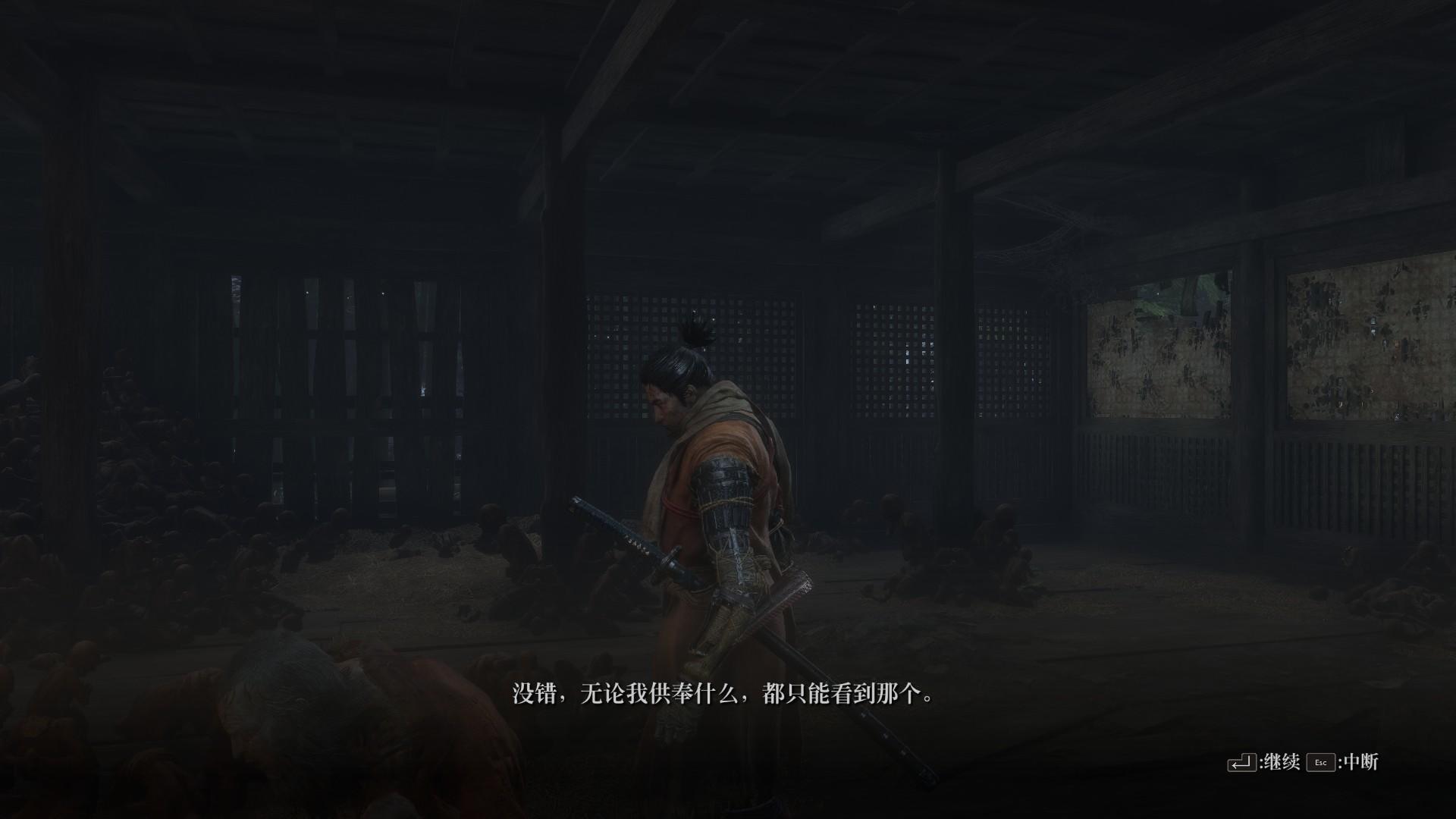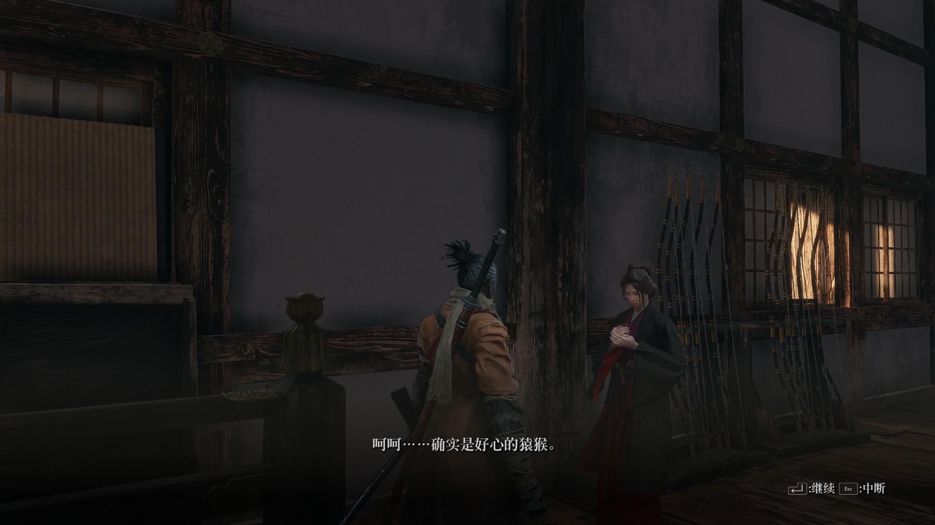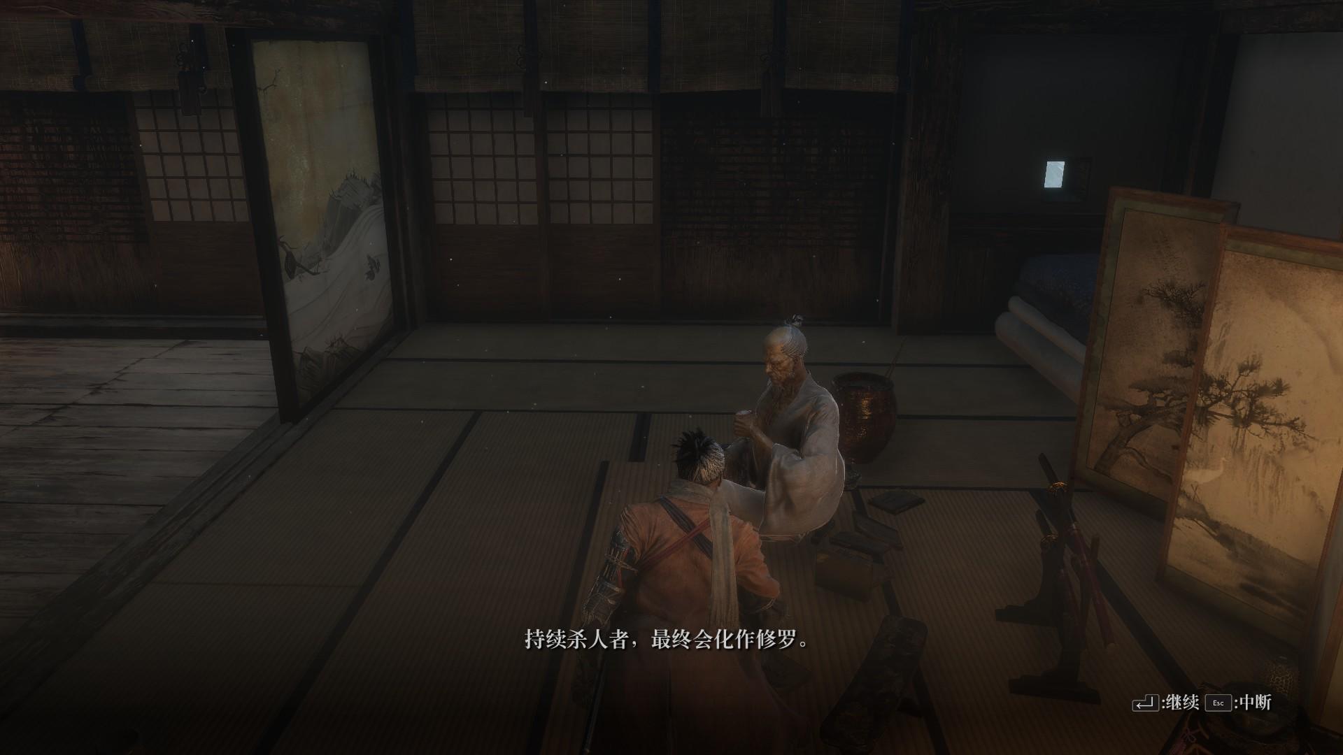首先需要介绍的是忍者飞猿是上一代龙胤丈的忍者,也和丈完成了龙胤缔结。丈选择了断绝龙胤,忍者飞猿被迫杀死丈完成了断绝,然后卸下忍义手成为了佛雕师。是不是很熟悉的剧情?玩家如果走了断绝不死结局,是一样的剧情,杀死九郎的狼成为了下一代佛雕师,相当于新的轮回。