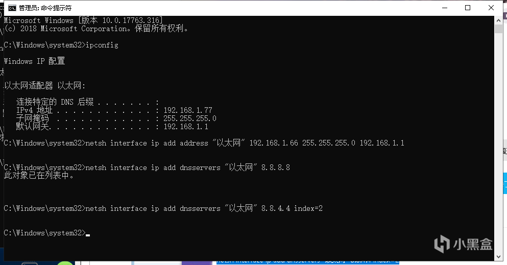 netsh interface ip add dnsservers "以太网" 8.8.8.8