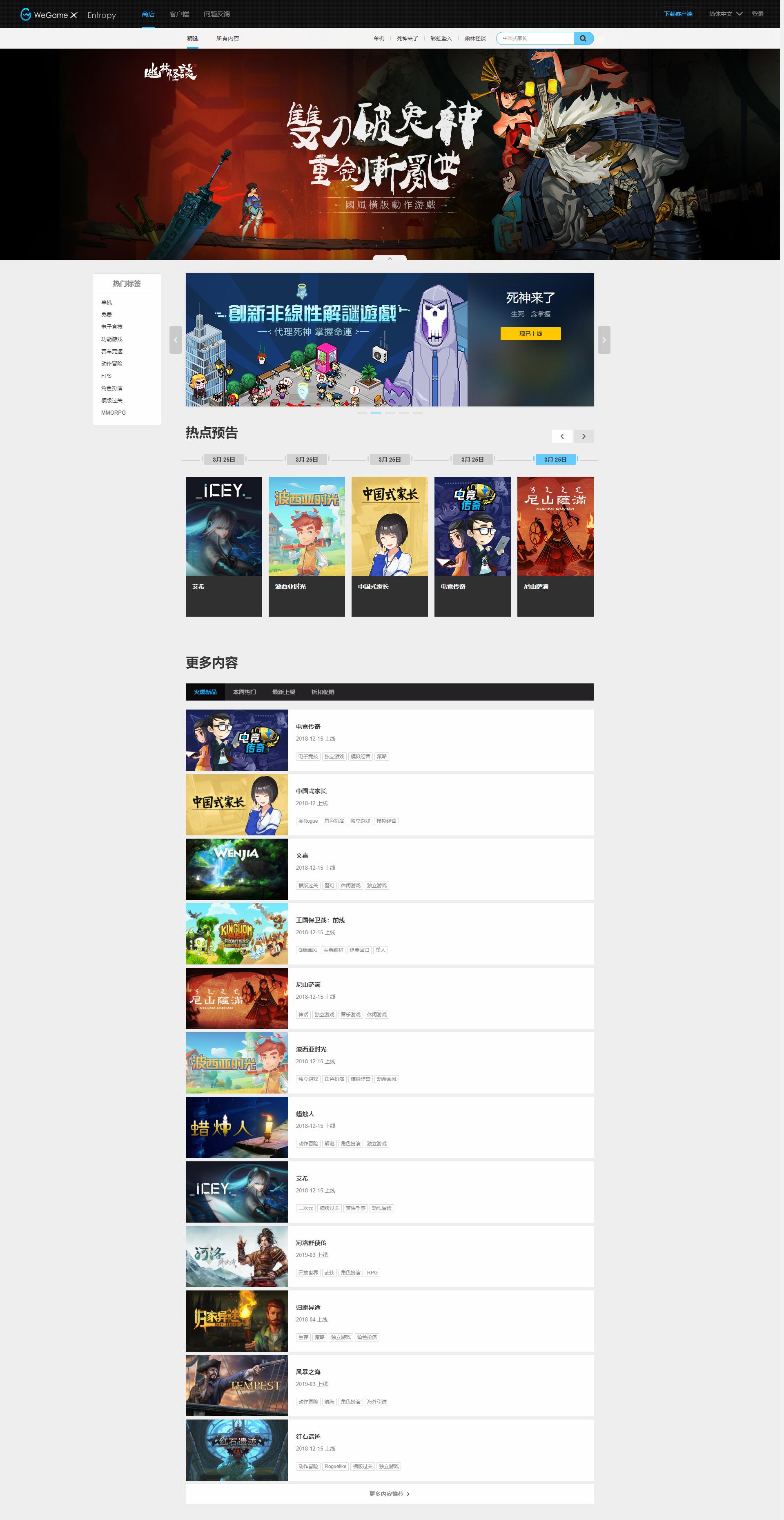我们打开商店,商店里的游戏几乎和WeGame中的游戏一模一样,而目前也主要是国产游戏,海外游戏几乎没有,甚至连猛汉王也未曾出现。如果点开其中的游戏你会发现,大陆IP会被禁止购买。