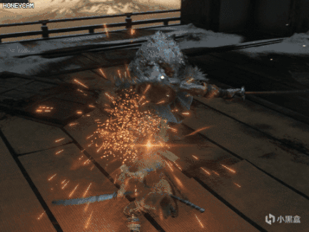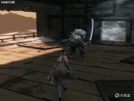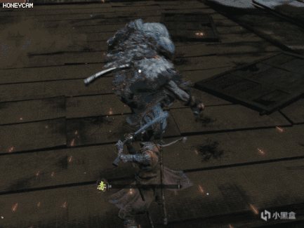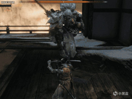 踢一下玩家,然后后跳扔散射状手里剑。格挡即可,反应快也可以直接向前垫步输出。这个技能有几率连用两次,单纯格挡会积累大量架势槽,及时拉开距离恢复。