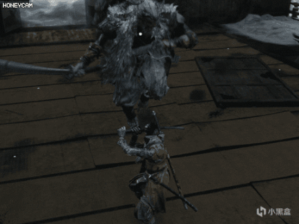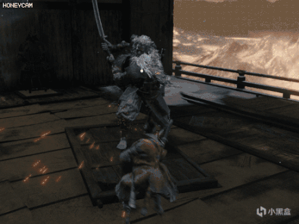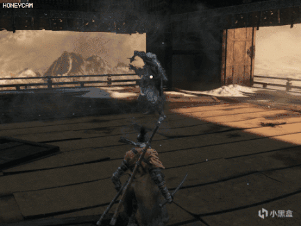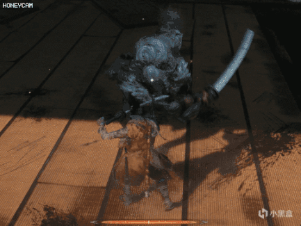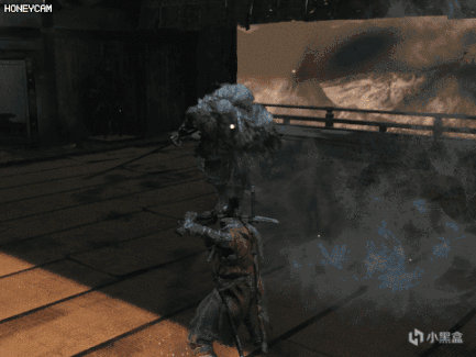 起手动作是单手高举,烟雾弹会对玩家造成短暂的硬直,并且必定会失去锁定,然后义父会偷袭玩家。
