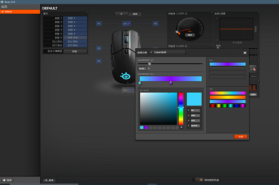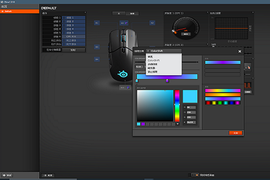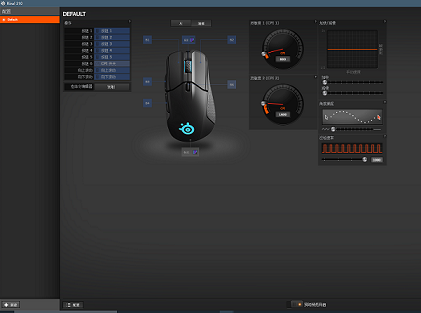 鼠标支持最高12000CPI,最小步进值为100CPI。界面右侧的两个仪表盘就是设置鼠标速度的地方,可以拖拽指针设置也可以输入对应的数值输入。