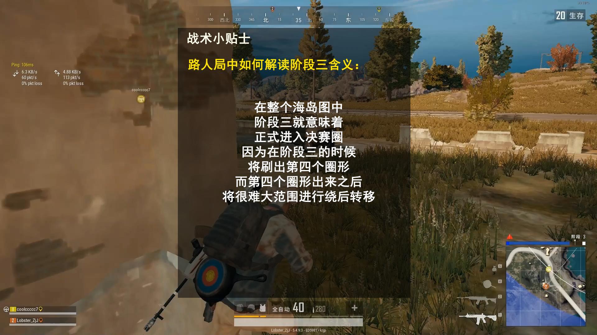 在整个海岛图中,阶段三就意味着正式进入决赛圈,因为在阶段三的时候,将刷出第四个圈形,而第四个圈形出来之后,将很难大范围进行绕后转移。