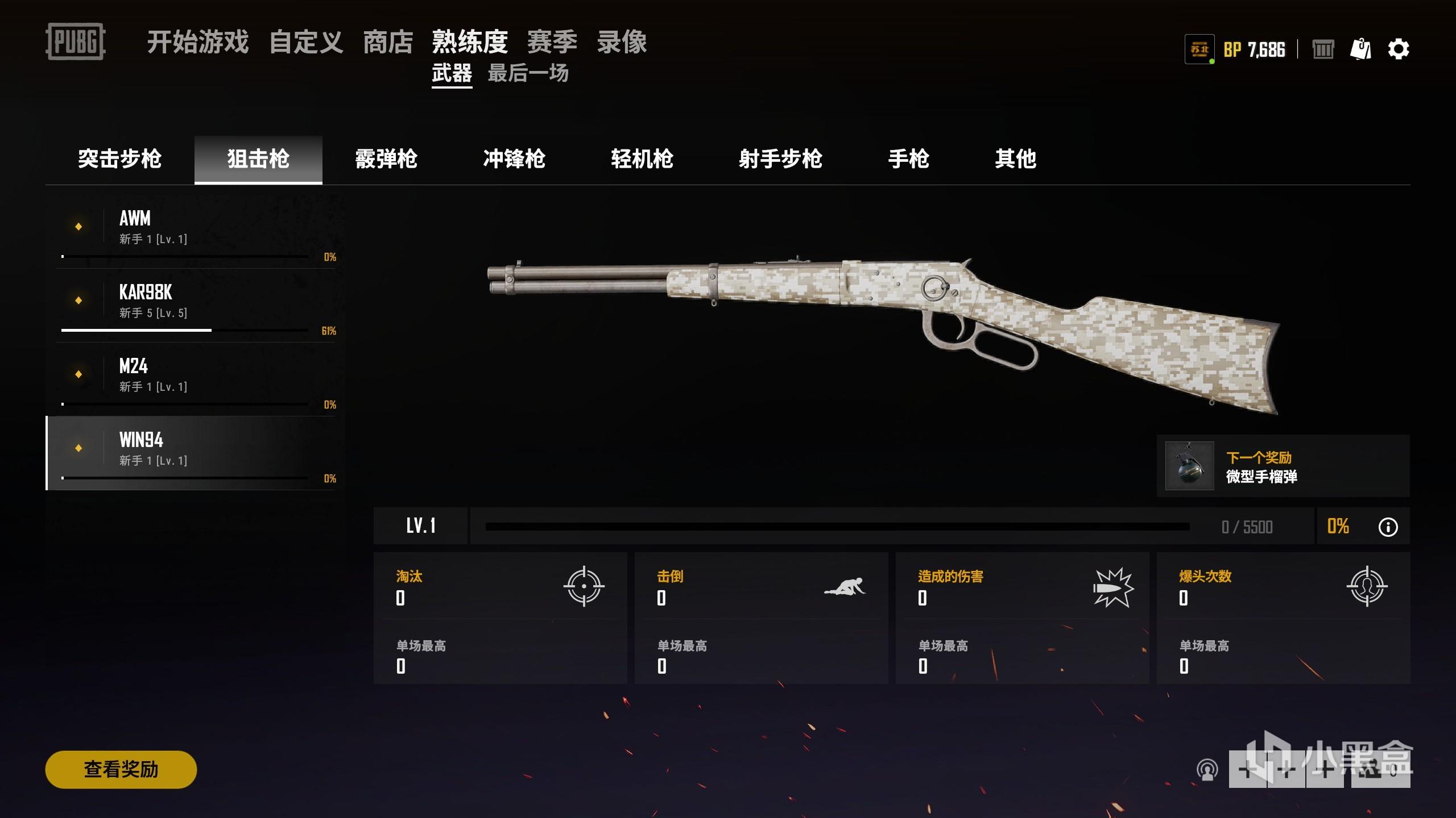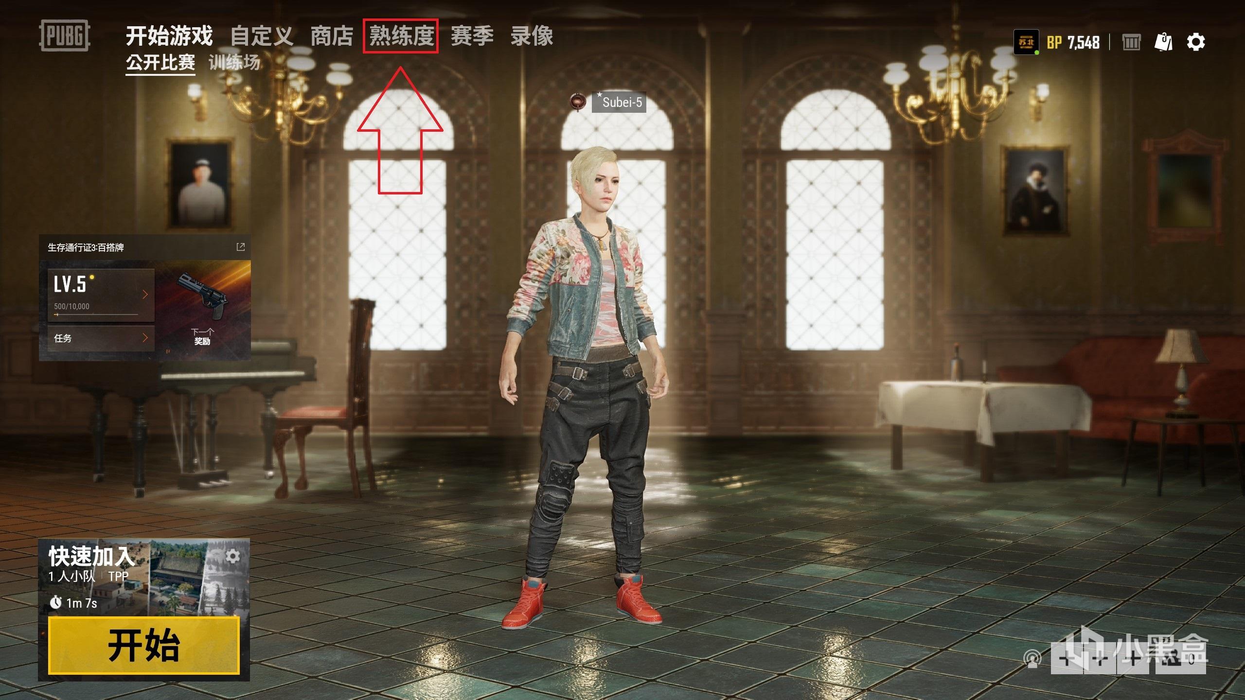 我们可以通过游戏大厅的顶部“熟练度”标签进入武器熟练度界面:
