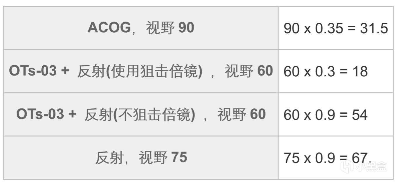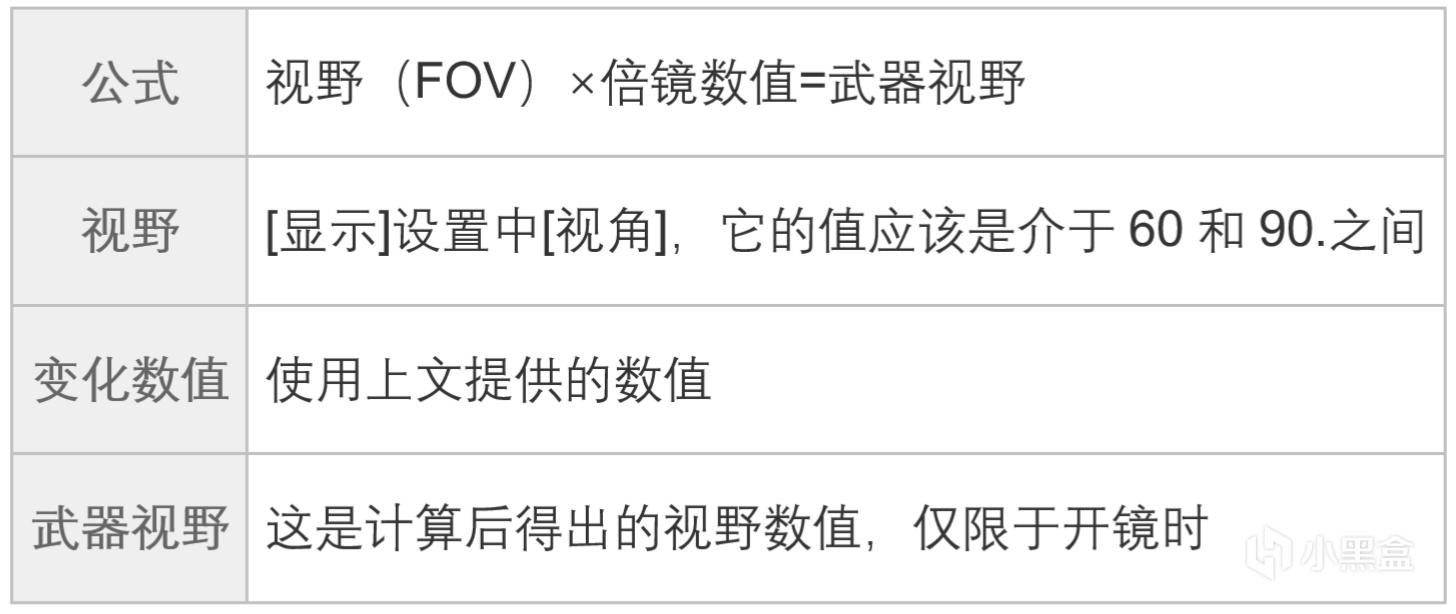 武器视野是根据使用的武器和配备的倍镜的不同进行修改。瞄准目标时,不同的倍镜都会根据特定的计算方式改变视野。