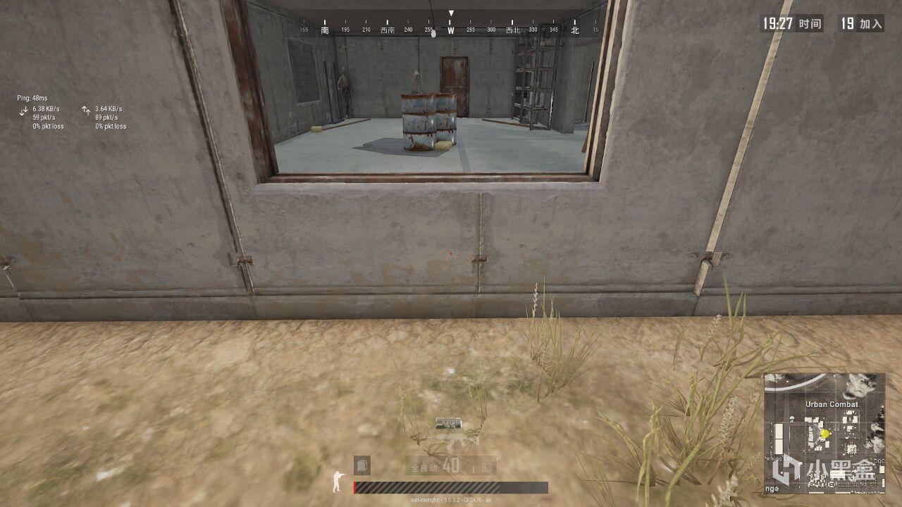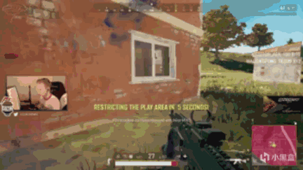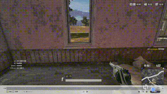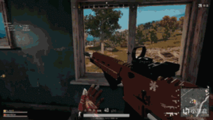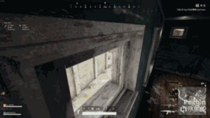 上面GIF中不给对手调整时间(比方打药,拉雷,扶人和刚落地时进行物品拾取)之外,在进行大跳的时候,除开快速的出入,还有一个非常具有战术性的动作,那就是停在窗户上侧身对房屋下的敌人进行打击,这是大跳中战术应用中最常用的一种。别小看这个细节,有的时候往往一个小细节就决定了你的成败。
