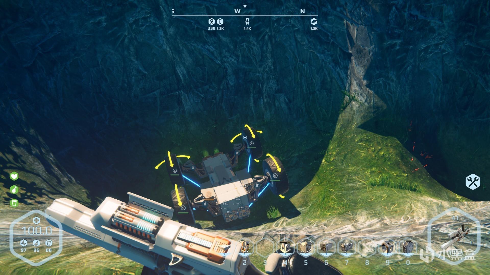这也并不意味着玩家在建造过程中是随心所欲的:在《星球流浪者》中组装飞行器或是移动基地时,必须遵循一定的物理规则,虽然这些规则并不十分严苛,但明显违反物理原理的装置也是没有办法正常运转的——比如奥露西娅造出来的小车,没开多远就翻掉了;想造一个会飞的小基地,结果飞不起来(笑)。