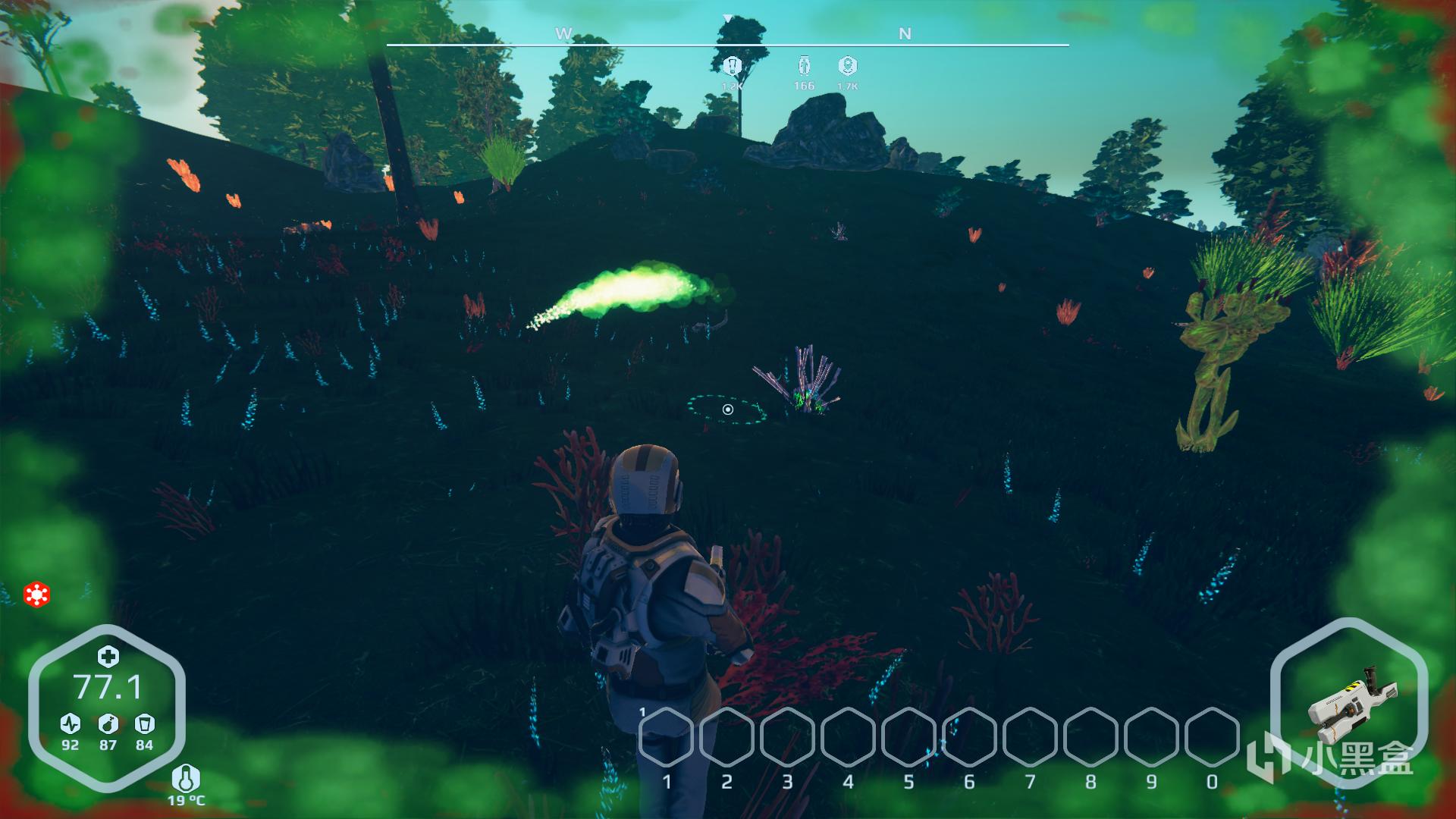 除了有攻击性的植物,许多动物也非常危险,当我接近的时候便会发起攻击。我只是飞船上负责维修的工程师,不擅长战斗,也没有强力的武器,动物向我攻击时便只能落荒而逃。