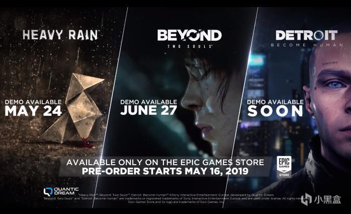 现在这3款游戏已在Epic游戏商店开启预购,其中《暴雨》《超凡双生》原预购价为19.99美元,《底特律:成为人类》原预购价为39.99美元,不过因为Epic游戏商店现在正在举行促销活动,因此玩家在6月13日前都可以在原预购价的基础上再减10美元购买游戏。