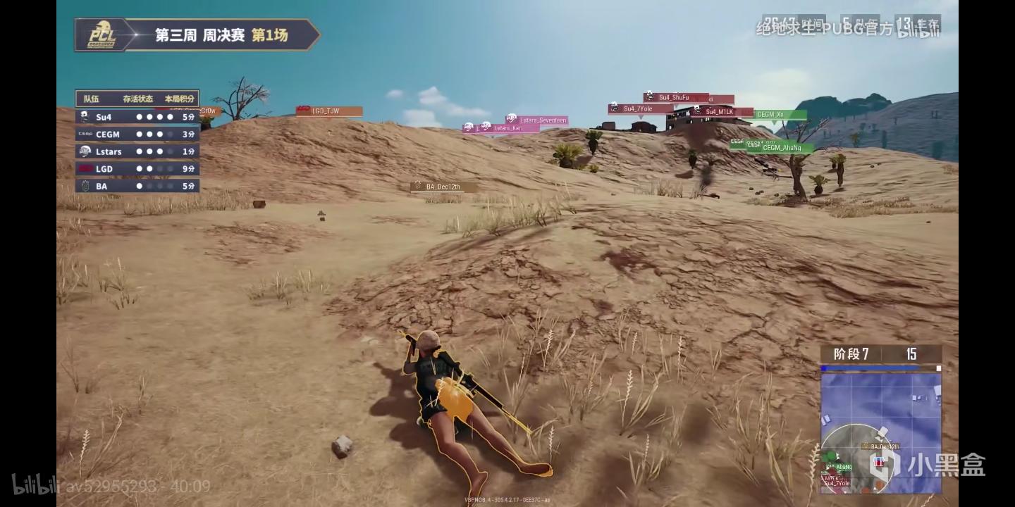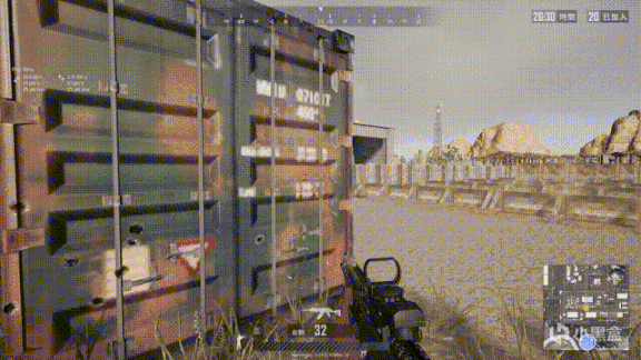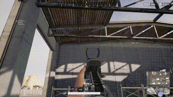 从GIF中可以看到我走出掩体并没有跑动,而且将十字准心放在敌人可能出现的位置,然后走出掩体,在敌人露头的一瞬间开镜扫射,并且利用偏头来调准准心。此类身法在FPP中有很大的实用性,盒友们可以学习一下。