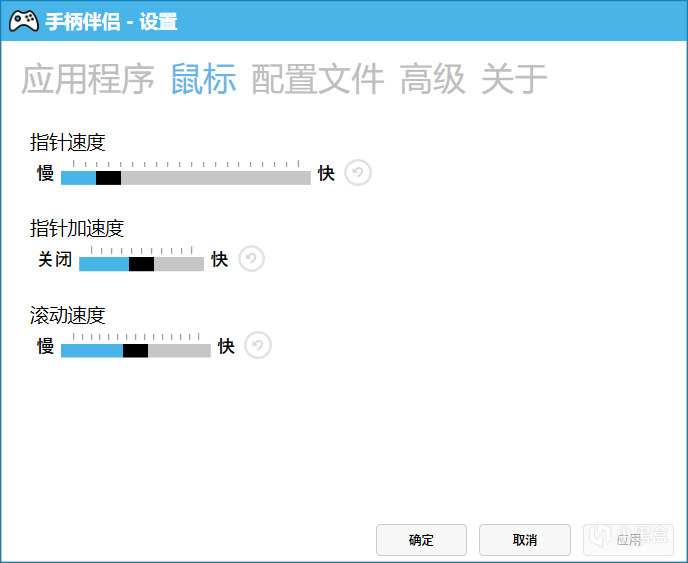 也可以根据自己的需要调整手柄控制下的指针的移动速度和滚轮的滚动速度,且不会影响鼠标的设定。