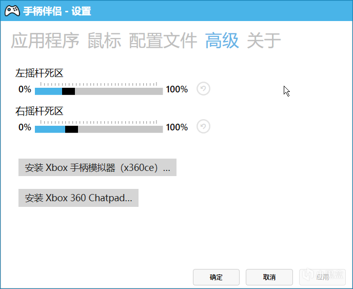 死区,故名思意,是一片死的区域,也就是手柄摇杆操作的无效区域。在该范围内转动摇杆均为无效操作,这是为了防止我们不小心触到摇杆导致的误操作,也可以在这里安装xbox手柄键盘的驱动程序。