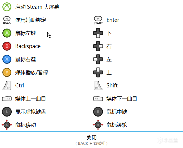 在右下角点开小图标后我们可以查看手柄键位的各项初始预设,并根据自己的需要自由的调整键位。