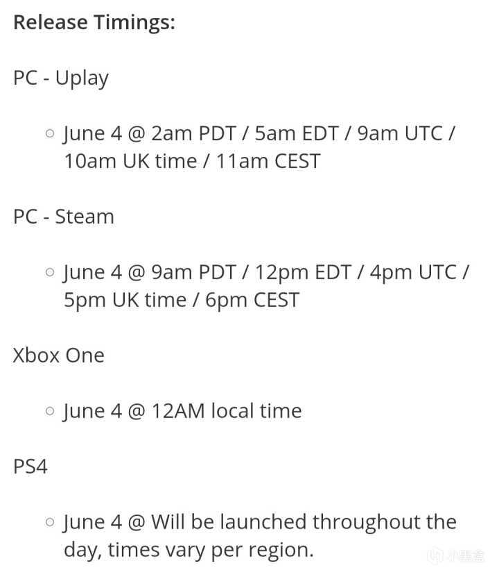 最后是详细的发布时间图,大家注意对照版本看准时区哦~