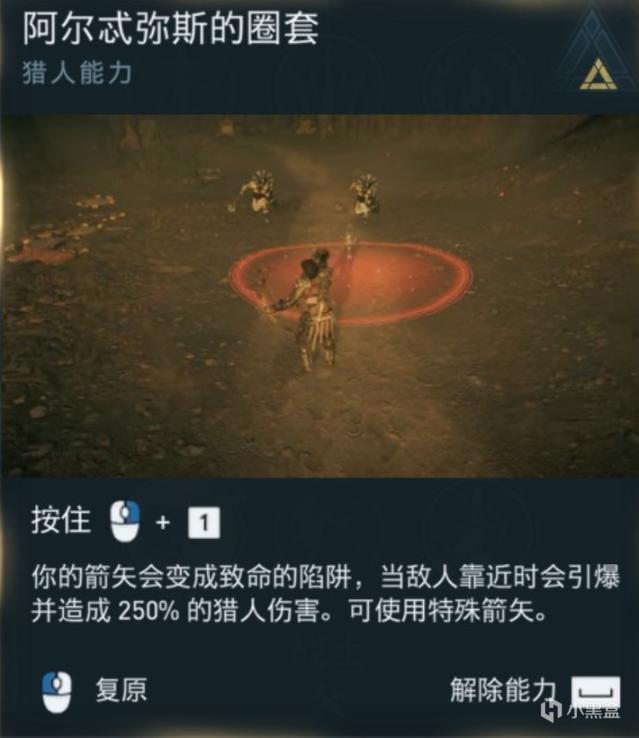 第二个技能,阿尔忒弥斯的圈套是阿尔忒弥斯之箭的升级版,能射出箭矢制造陷阱,当敌人靠近时会引爆,此技能搭配前一个技能有奇效。