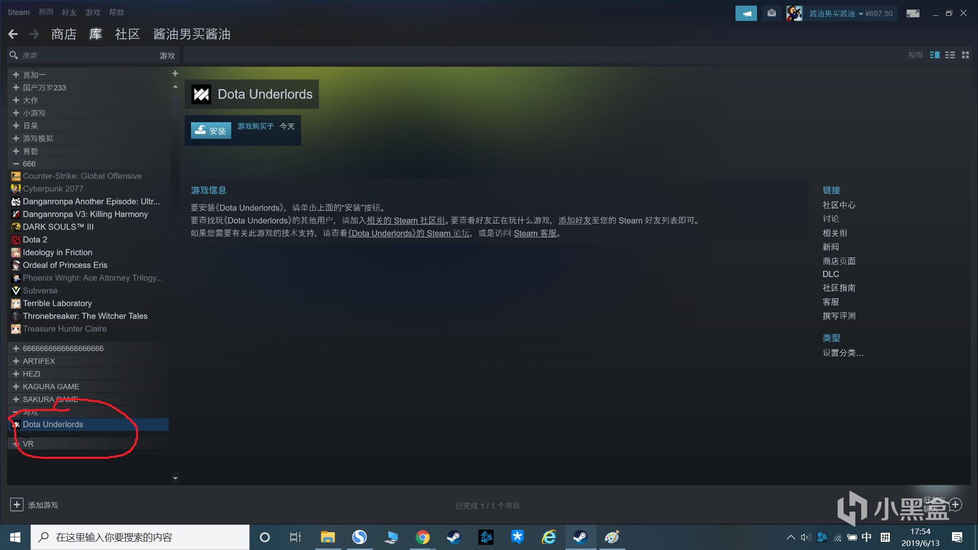 3.退出DOTA2,返回STEAM库存页面,点击下载即可游戏